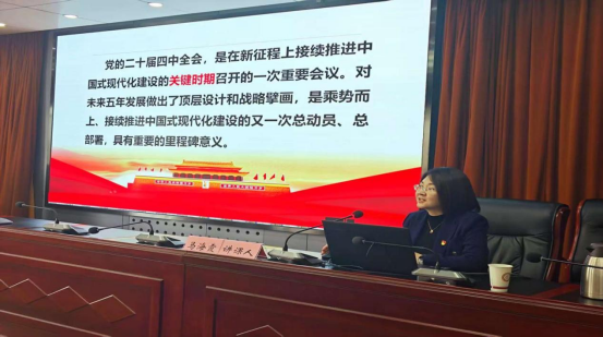 近日,区委巡察办特邀区委讲师团成员、区委党校高级讲师马海霞老师,为区委巡察办、十五届区委第九轮常规巡察全体干部开展专题宣讲,推动党的二十届四中全会精神在巡察机构落地生根、见行见效。